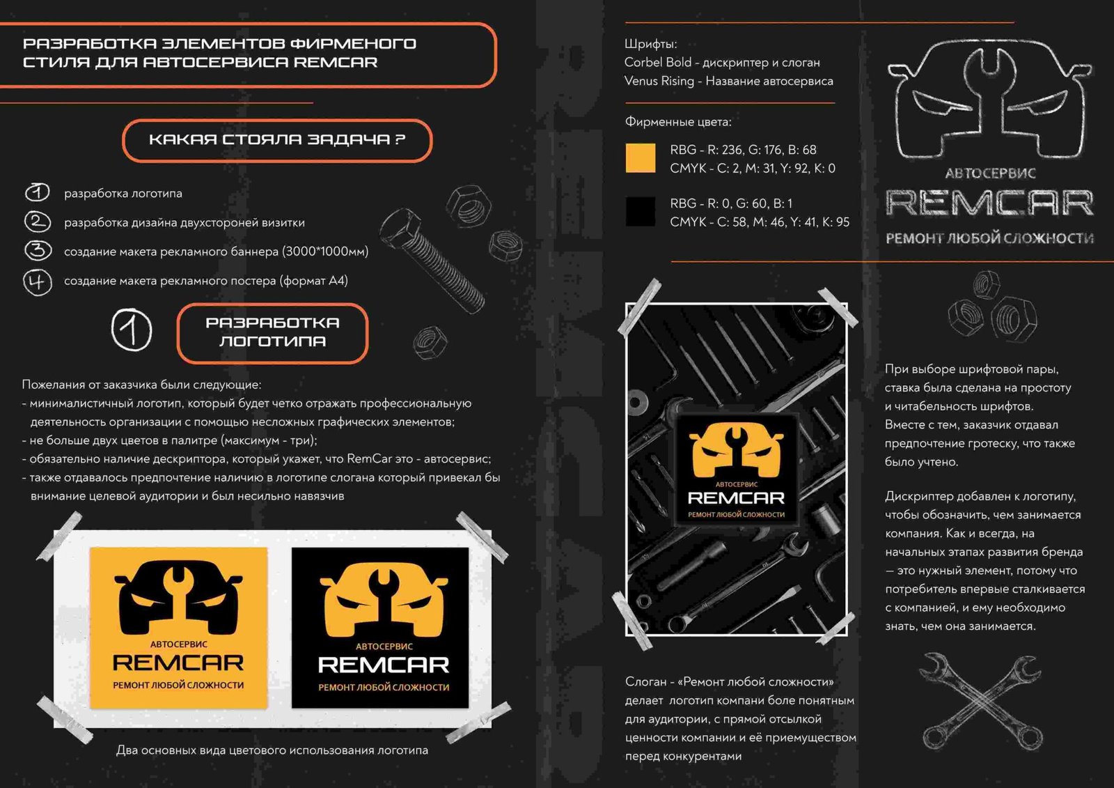 Created a professional brand identity for Remcar, a car repair and maintenance company, including logo design, visual elements, and branding guidelines to establish a strong and recognizable presence.