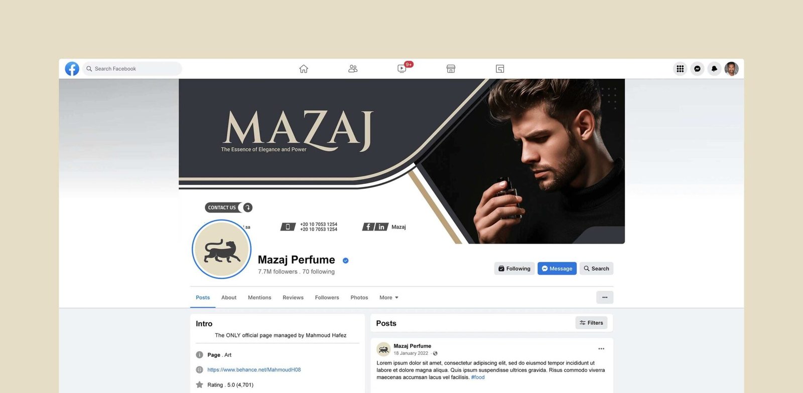 Created a professional and elegant brand identity for Mazaj Perfume, including logo design, visual elements, and brand guidelines to establish a luxurious and memorable presence in the fragrance market.